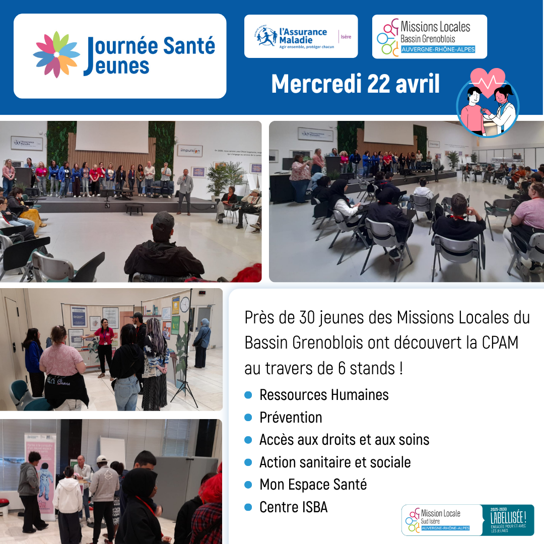 💡 Mercredi 22 avril s’est tenue la Journée Santé Jeunes avec la CAISSE PRIMAIRE D’ASSURANCE MALADIE DE L’ISERE pour les jeunes des Missions Locales du Bassins Grenoblois ! Une 1ère édition réussie 👏